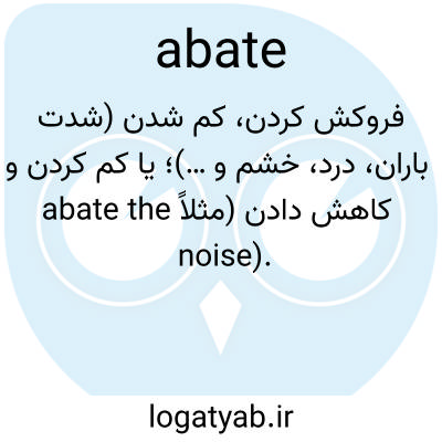 فروکش کردن، کم شدن (شدت باران، درد، خشم و …)؛ یا کم کردن و کاهش دادن (مثلاً abate the noise).