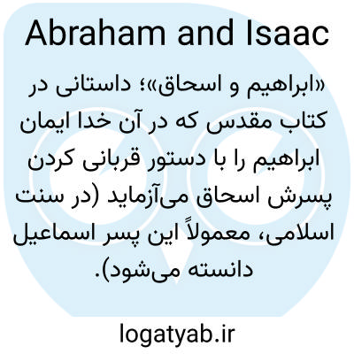 📌 دو پدرسالار اول عهد عتیق. طبق کتاب پیدایش، خدا با ابراهیم عهد بست و به او گفت که کشور خود را ترک کند و قول داد که سرزمین کنعان را به خانوادهاش (عبرانیان) بدهد. این سرزمین موعود بود. خدا همچنین قول داد که به عهد خود با پسر ابراهیم، اسحاق، پایبند باشد. پس از مدتی، خدا ابراهیم را با گفتن اینکه اسحاق را به عنوان قربانی سوختنی قربانی کند، آزمایش کرد. ابراهیم مطیعانه اسحاق را بر روی قربانگاه قرار داد و چاقویی برداشت تا او را بکشد. سپس فرشتهای از جانب خداوند ظاهر شد و به ابراهیم گفت که پسرش را نجات دهد، زیرا ابراهیم ایمان خود را ثابت کرده بود.