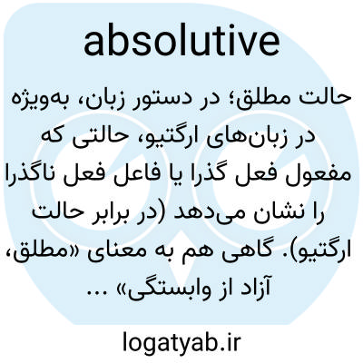 📌 توجه به یا مربوط به حالت دستوری یا شکل صرفی فاعل فعل لازم و مفعول مستقیم فعل متعدی در یک زبان ارگاتیو مانند اینوئیت.