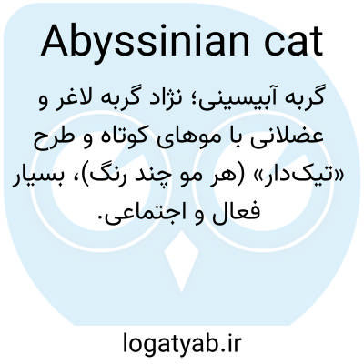 📌 نژادی از گربههای اهلی که خاستگاه آنها آفریقا است و معمولاً خزی خاکستری یا قهوهای با زیرلایهای قرمزرنگ دارند که به آنها ظاهری راهراه میدهد.