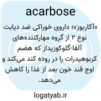 آکاربوز: یک داروی ضد دیابت که برای درمان دیابت نوع ۲ در انسان استفاده میشود.