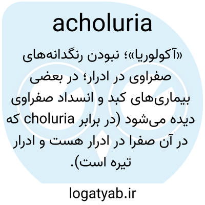 «آکولوریا»؛ نبودن رنگدانه‌های صفراوی در ادرار؛ در بعضی بیماری‌های کبد و انسداد صفراوی دیده می‌شود (در برابر choluria که در آن صفرا در ادرار هست و ادرار تیره است).