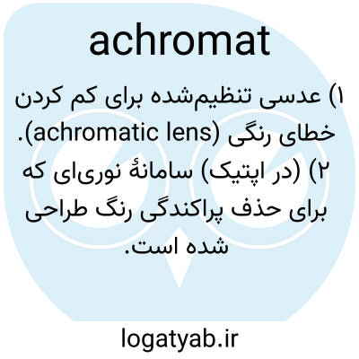 ۱) عدسی تنظیم‌شده برای کم کردن خطای رنگی (achromatic lens). ۲) (در اپتیک) سامانهٔ نوری‌ای که برای حذف پراکندگی رنگ طراحی شده است.