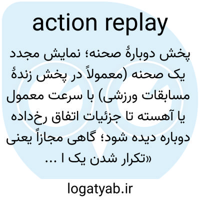 📌 نام آمریکایی و کانادایی: بازپخش فوری. پخش مجدد بخش کوچکی از یک فیلم تلویزیونی یا نوار یک مسابقه یا سایر مسابقات ورزشی، اغلب به صورت حرکت آهسته