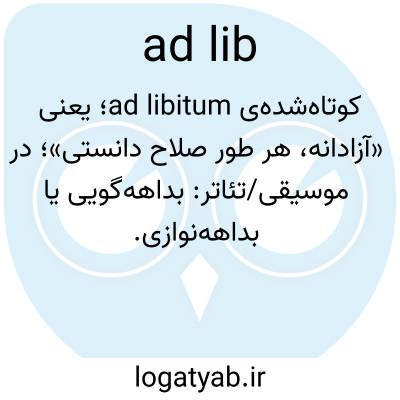 کوتاه‌شده‌ی ad libitum؛ یعنی «آزادانه، هر طور صلاح دانستی»؛ در موسیقی/تئاتر: بداهه‌گویی یا بداهه‌نوازی.