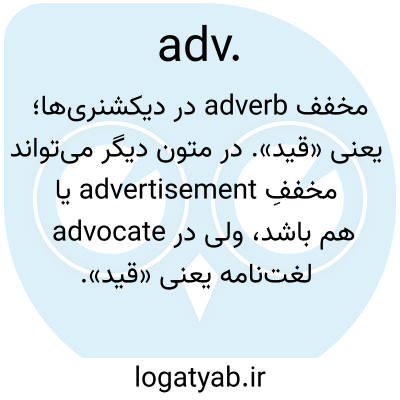 مخفف adverb در دیکشنری‌ها؛ یعنی «قید». در متون دیگر می‌تواند مخففِ advertisement یا advocate هم باشد، ولی در لغت‌نامه یعنی «قید».