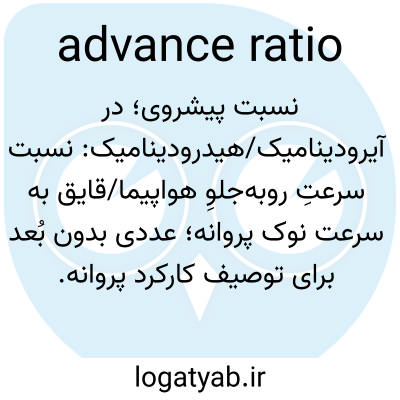 نسبت پیشروی؛ در آیرودینامیک/هیدرودینامیک: نسبت سرعتِ رو‌به‌جلوِ هواپیما/قایق به سرعت نوک پروانه؛ عددی بدون بُعد برای توصیف کارکرد پروانه.