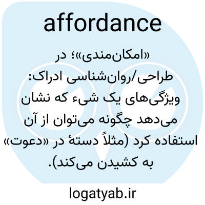 📌 ویژگی یک شیء یا محیط که استفاده یا تعامل خاصی را برمی‌انگیزد یا ترویج می‌دهد، به خصوص آن چیزی که به راحتی برای کاربر قابل درک باشد، مانند دستگیره در.