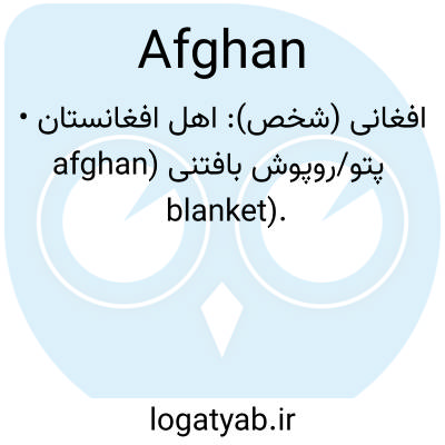 📌 پتوی افغانی، نوعی پتوی پشمی نرم، قلاببافی شده یا بافتنی، معمولاً با طرح هندسی.