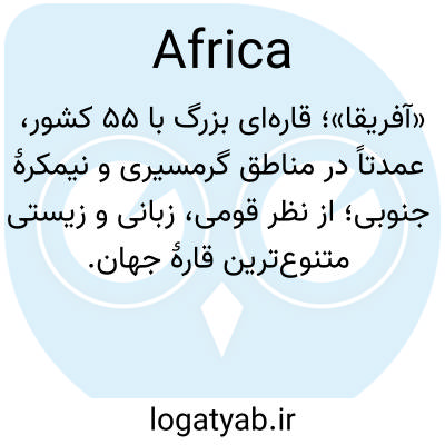 📌 قاره‌ای در جنوب اروپا و بین اقیانوس اطلس و اقیانوس هند. حدود 11,700,000 مایل مربع (30,303,000 کیلومتر مربع).