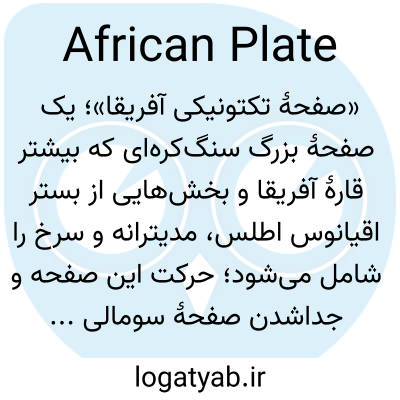 📌 یک تقسیم‌بندی تکتونیکی عمده از پوسته زمین، شامل قاره آفریقا و همچنین حوضه‌های اقیانوسی مجاور (حوضه‌های قناری، کیپ ورد، آنگولا، دماغه آگولاس، سومالی، ماداگاسکار و ناتال) است و از شمال به صفحات اوراسیا و عربستان، از شرق به پشته‌های میان اقیانوسی (پشته‌های جنوب غربی هند، میان هند و کارلزبرگ)، از جنوب به صفحه قطب جنوب و از غرب به پشته میان اقیانوس اطلس محدود می‌شود.