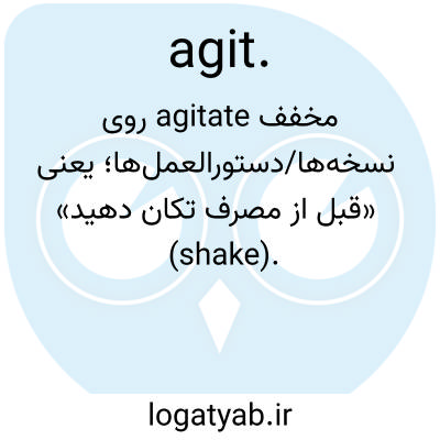 داروسازان گاهی اوقات دستورالعملها را به صورت خلاصه به صورت agit. بیان میکنند، یک نشانه مختصر که از کریستالیزاسیون و دوز ناهموار در سوسپانسیونها جلوگیری میکند.