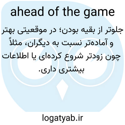 📌 در موقعیتی برتر، به ویژه از نظر مالی؛ موفق شدن یا برنده شدن. برای مثال، اگر بتوانیم تا ماه آینده ۲۰۰۰ واحد از این محصول را بفروشیم، از بازی خیلی جلوتر خواهیم بود. این اصطلاح از ahead of به معنای «پیش از» استفاده میکند، کاربردی که از اواسط دهه ۱۷۰۰ میلادی رواج دارد و موفقیت در قمار (بازی) را به برنده شدن در زمینههای دیگر منتقل میکند. همچنین به come out ahead مراجعه کنید.