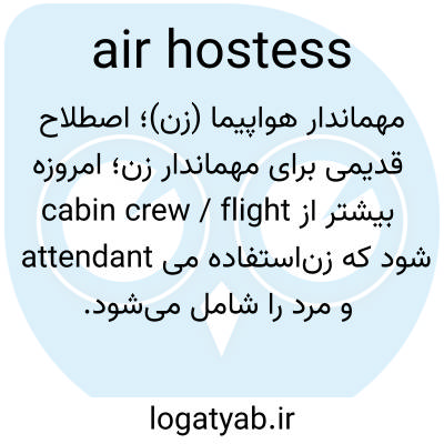 مهماندار هواپیما (زن)؛ اصطلاح قدیمی برای مهماندار زن؛ امروزه بیشتر از cabin crew / flight attendant استفاده می‌شود که زن و مرد را شامل می‌شود.