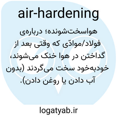 هواسخت‌شونده؛ درباره‌ی فولاد/موادّی که وقتی بعد از گداختن در هوا خنک می‌شوند، خودبه‌خود سخت می‌گردند (بدون آب دادن یا روغن دادن).