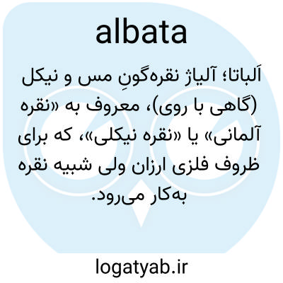 آلباتا، الباطا، اسم. آلیاژی سفید و نقرهای از نیکل، روی و مس - همچنین به عنوان ورق بریتانیایی و نقره آلمانی نیز شناخته میشود.