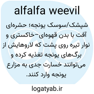 📌 یک سرخرطومی اروپایی به نام Hypera postica که اکنون به طور گسترده در آمریکای شمالی نیز پراکنده است، آفت مهمی است که عمدتاً یونجه را در هر دو مرحله لاروی و بلوغ تحت تأثیر قرار میدهد.