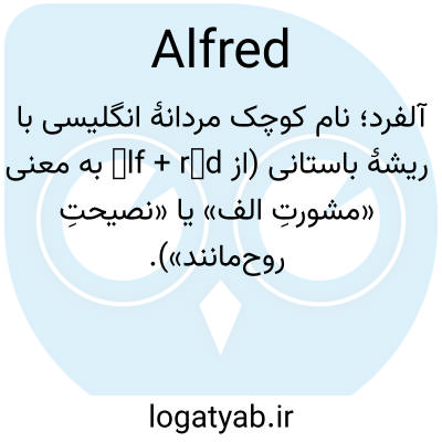 آلفرد؛ نام کوچک مردانهٔ انگلیسی با ریشهٔ باستانی (از ælf + ræd به معنی «مشورتِ الف» یا «نصیحتِ روح‌مانند»).