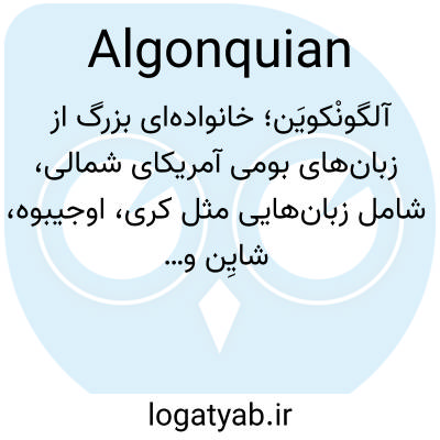 📌 خانوادهای از زبانها که اکنون یا قبلاً توسط سرخپوستان آمریکای شمالی در منطقهای که از لابرادور به سمت غرب تا کوههای راکی، از غرب به جنوب غربی تا میشیگان و ایلینوی، و از جنوب غربی در امتداد ساحل اقیانوس اطلس تا کیپ هاتراس امتداد دارد، صحبت میشود، از جمله به ویژه آراپاهو، بلکفوت، شاین، کری، فاکس، ماساچوست، میکماک، اوجیبوه و پوهاتان.