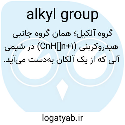 📌 هر یک از مجموعه‌ای از گروه‌های تک‌ظرفیتی با فرمول کلی CnH2n+1 که از هیدروکربن‌های آلیفاتیک مشتق شده‌اند، مانند گروه متیل، CH3−، یا گروه اتیل، C2H5−.