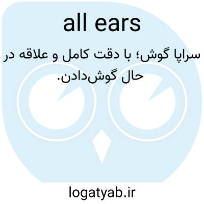 📌 مشتاق شنیدن چیزی، گوش دادن با دقت، مانند «به من بگو چه کس دیگری دعوت شده بود؟ من سراپا گوش هستم.» [عامیانه؛ اواخر دهه ۱۷۰۰] همچنین «همه چشم‌ها را می‌بینم».