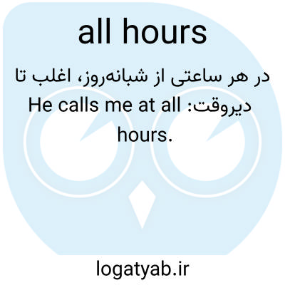 در هر ساعتی از شبانه‌روز، اغلب تا دیروقت: He calls me at all hours.