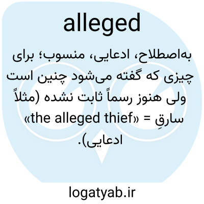 به‌اصطلاح، ادعایی، منسوب؛ برای چیزی که گفته می‌شود چنین است ولی هنوز رسماً ثابت نشده (مثلاً «the alleged thief» = سارقِ ادعایی).
