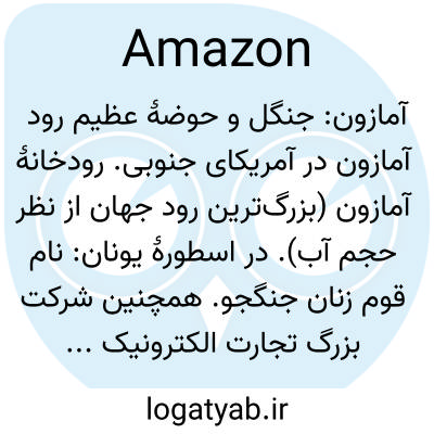 آمازون: جنگل و حوضهٔ عظیم رود آمازون در آمریکای جنوبی. رودخانهٔ آمازون (بزرگ‌ترین رود جهان از نظر حجم آب). در اسطورهٔ یونان: نام قوم زنان جنگجو. همچنین شرکت بزرگ تجارت الکترونیک «Amazon.com».