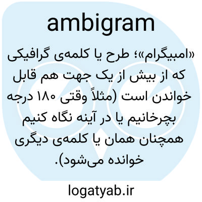 «امبیگرام»؛ طرح یا کلمه‌ی گرافیکی که از بیش از یک جهت هم قابل خواندن است (مثلاً وقتی ۱۸۰ درجه بچرخانیم یا در آینه نگاه کنیم همچنان همان یا کلمه‌ی دیگری خوانده می‌شود).