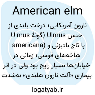 📌 نوعی نارون، Ulmus americana، از آمریکای شمالی، که برای سایه و زینت کشت میشود: درخت ایالتی ماساچوست، نبراسکا و داکوتای شمالی.