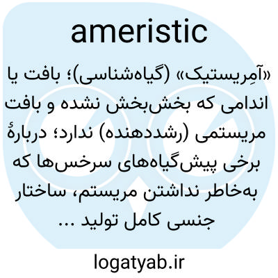 «آمِریستیک» (گیاه‌شناسی)؛ بافت یا اندامی که بخش‌بخش نشده و بافت مریستمی (رشددهنده) ندارد؛ دربارهٔ برخی پیش‌گیاه‌های سرخس‌ها که به‌خاطر نداشتن مریستم، ساختار جنسی کامل تولید نمی‌کنند.
