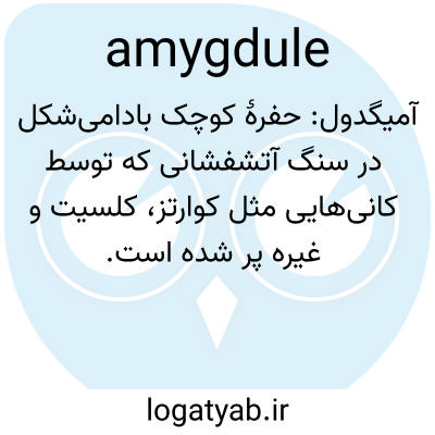 آمیگدول: حفرهٔ کوچک بادامی‌شکل در سنگ آتشفشانی که توسط کانی‌هایی مثل کوارتز، کلسیت و غیره پر شده است.