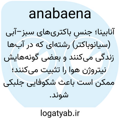 📌 هر یک از جلبک‌های آب شیرین از جنس آنابنا، که معمولاً به صورت توده‌ای یافت می‌شوند و اغلب آب آشامیدنی را آلوده می‌کنند و به آن بو و طعم ماهی می‌دهند.