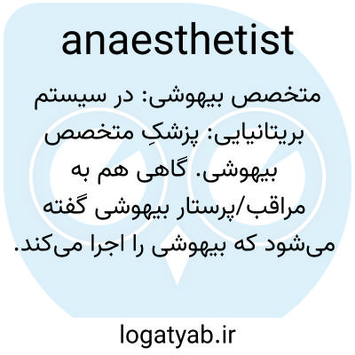 متخصص بیهوشی: در سیستم بریتانیایی: پزشکِ متخصص بیهوشی. گاهی هم به مراقب/پرستار بیهوشی گفته می‌شود که بیهوشی را اجرا می‌کند.