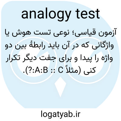 📌 آزمون استدلالی که در آن از آزمودنی خواسته می‌شود تا عبارت گمشده را در رابطه‌ای به شکل «نسبت A به B مانند نسبت Y به ^^^ است» ارائه دهد.