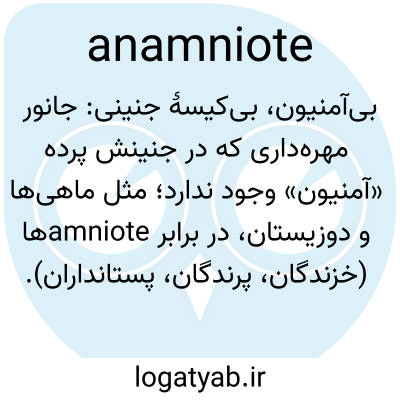 📌 هر یک از مهره‌داران گروه آنامنیا (آنامنیوتا)، شامل سیکلوستوم‌ها، ماهی‌ها و دوزیستان، که با فقدان آمنیون در مرحله جنینی مشخص می‌شوند.