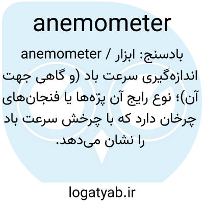 anemometer / بادسنج: ابزار اندازه‌گیری سرعت باد (و گاهی جهت آن)؛ نوع رایج آن پرّه‌ها یا فنجان‌های چرخان دارد که با چرخش سرعت باد را نشان می‌دهد.