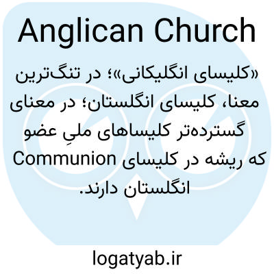 «کلیسای انگلیکانی»؛ در تنگ‌ترین معنا، کلیسای انگلستان؛ در معنای گسترده‌تر کلیساهای ملیِ عضو Communion که ریشه در کلیسای انگلستان دارند.