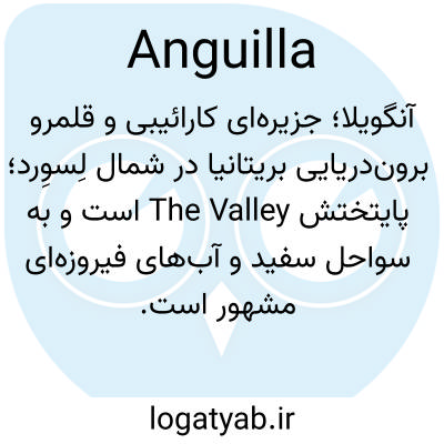 آنگویلا؛ جزیره‌ای کارائیبی و قلمرو برون‌دریایی بریتانیا در شمال لِسوِرد؛ پایتختش The Valley است و به سواحل سفید و آب‌های فیروزه‌ای مشهور است.