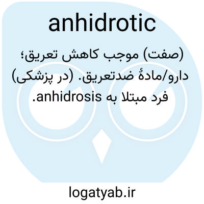 (صفت) موجب کاهش تعریق؛ دارو/مادهٔ ضدتعریق. (در پزشکی) فرد مبتلا به anhidrosis.
