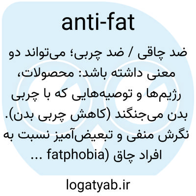 📌 همچنین چاق هراس، مخالف، خصمانه یا بیزار از چاقی و افراد چاق.