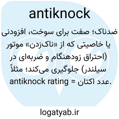 ضدناک؛ صفت برای سوخت، افزودنی یا خاصیتی که از «ناک‌زدن» موتور (احتراق زودهنگام و ضربه‌ای در سیلندر) جلوگیری می‌کند؛ مثلاً antiknock rating = عدد اکتان.