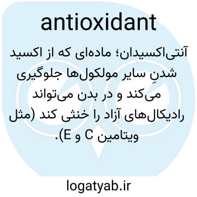 آنتی‌اکسیدان؛ ماده‌ای که از اکسید شدنِ سایر مولکول‌ها جلوگیری می‌کند و در بدن می‌تواند رادیکال‌های آزاد را خنثی کند (مثل ویتامین C و E).