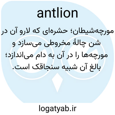 📌 همچنین به آن مگس مورچهخوار میگویند. هر یک از حشرات عصبی مختلف از خانواده Myrmeleontidae که معمولاً شبیه سنجاقکها هستند و بیشتر در مناطق گرمسیری یافت میشوند.