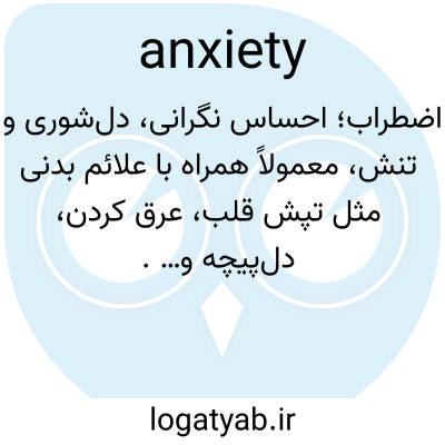 اضطراب؛ احساس نگرانی، دل‌شوری و تنش، معمولاً همراه با علائم بدنی مثل تپش قلب، عرق کردن، دل‌پیچه و… .