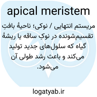 مریستم انتهایی / نوکی؛ ناحیهٔ بافتِ تقسیم‌شونده در نوکِ ساقه یا ریشهٔ گیاه که سلول‌های جدید تولید می‌کند و باعث رشد طولی آن می‌شود.