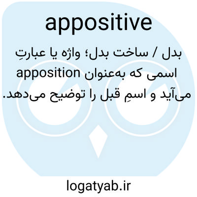 عبارت اول یک بدل است - معمولاً یک اسم یا عبارت اسمی که اسم یا عبارت اسمی دیگری را که در کنار آن در جمله ظاهر میشود، توصیف میکند.