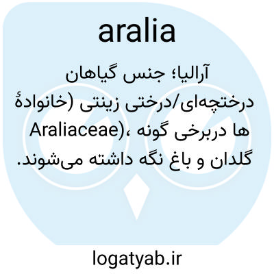 📌 هر یک از گیاهان مختلف جنس آرالیا و جنسهای مرتبط، که تعدادی از آنها به عنوان گیاه آپارتمانی کشت میشوند یا کاربرد دارویی دارند.