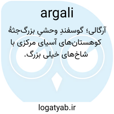 📌 نوعی گوسفند وحشی به نام اویس آمون، اهل آسیا، با شاخهای بلند و خمیده که معمولاً یک مارپیچ باز و رو به بیرون را تشکیل میدهند: کمیاب یا در معرض خطر انقراض.