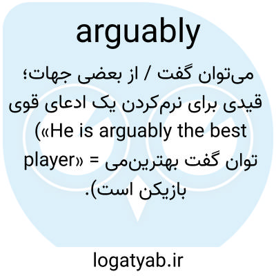 می‌توان گفت / از بعضی جهات؛ قیدی برای نرم‌کردن یک ادعای قوی («He is arguably the best player» = می‌توان گفت بهترین بازیکن است).